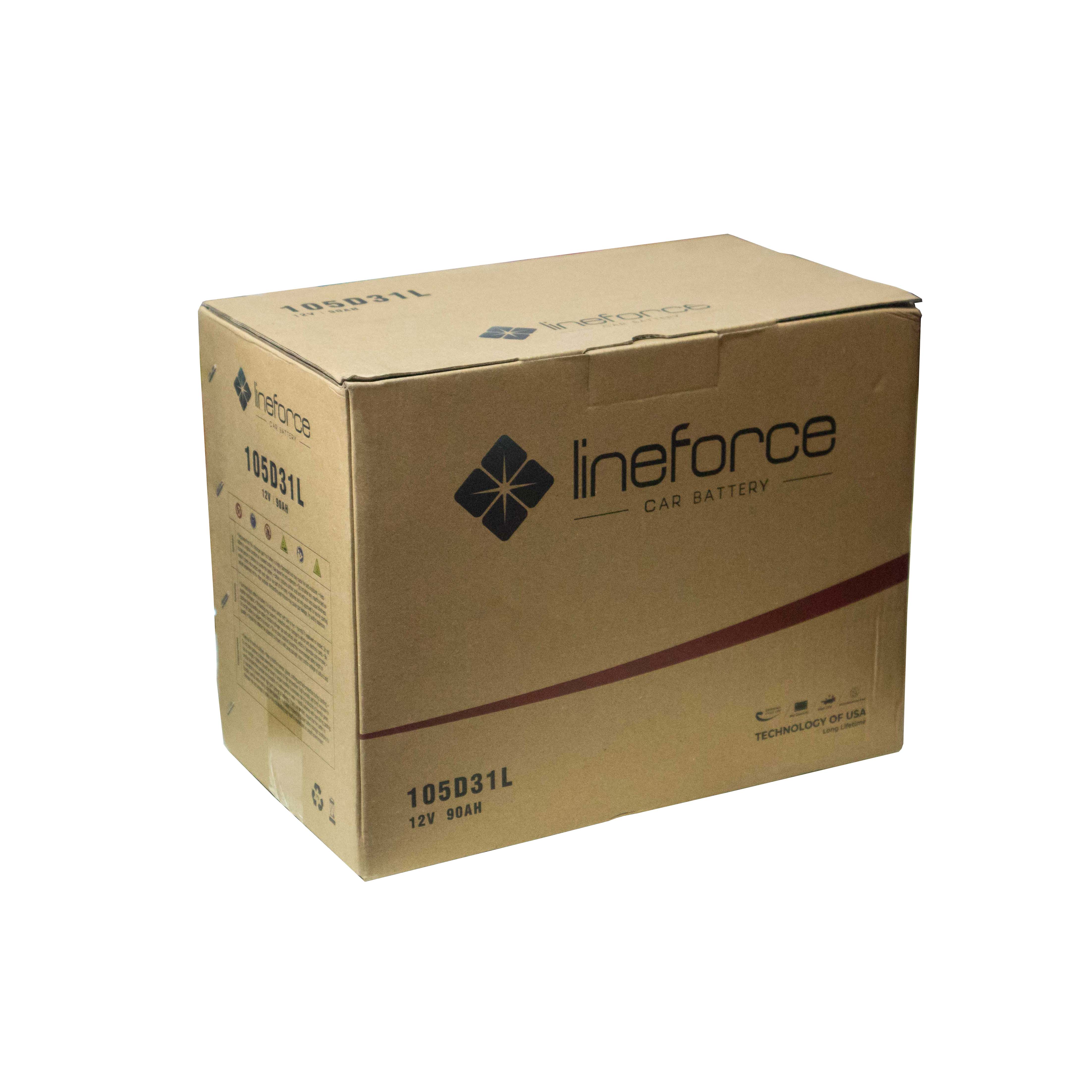 Lineforce 12V 90AH 105D31L MF là bình ắc quy sản xuất tại Malaysia trên dây chuyền công nghệ ENERGY GRID độc quyền của Mỹ.