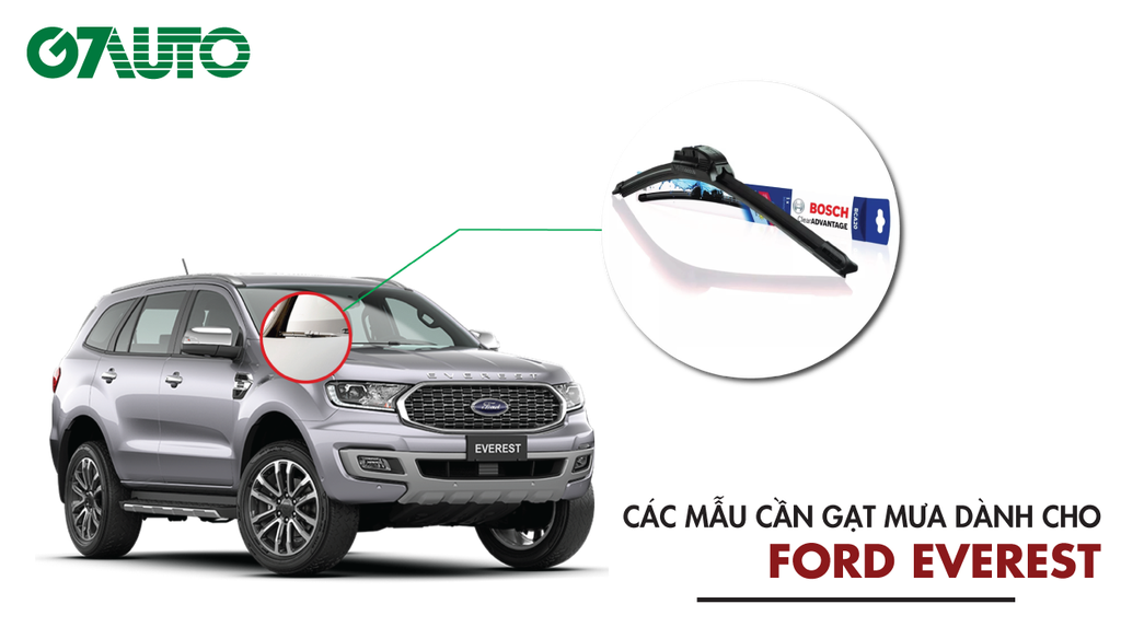 Gạt mưa ô tô là một phụ tùng quan trọng của ô tô, sử dụng chủ yếu trong thời tiết ẩm ướt để làm sạch sương, nước mưa đọng bám trên bề mặt kính chắn gió. Trong bài viết dưới đây, G7Auto sẽ tư vấn cho bạn về kích thước, chi phí cũng như các hướng dẫn thay lắp gạt mưa cho xe Ford Everest: