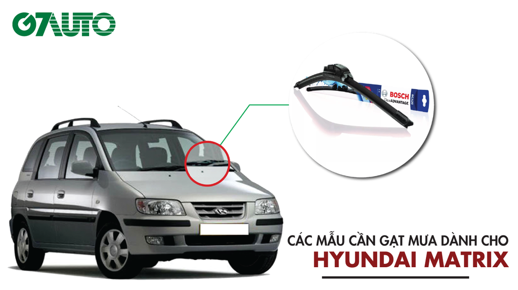 Gạt mưa ô tô là một phụ tùng quan trọng của ô tô, sử dụng chủ yếu trong thời tiết ẩm ướt để làm sạch sương, nước mưa đọng bám trên bề mặt kính chắn gió. Trong bài viết dưới đây, G7Auto sẽ tư vấn cho bạn về kích thước, chi phí cũng như các hướng dẫn thay lắp gạt mưa cho xe Hyundai Matrix: