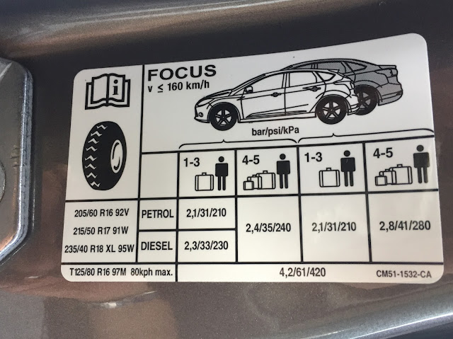 Bảng hướng dẫn áp suất lốp của Ford Focus