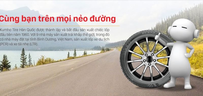Kumho Tire Hàn Quốc được thành lập và bắt đầu sản xuất chiếc lốp đầu tiên năm 1960. Với 9 nhà máy sản xuất trải khắp thế giới, trong đó có nhà máy đặt tại tỉnh Bình Dương, Việt Nam, sản xuất lốp xe du lịch (PCR) và xe tải nhẹ (LTR). Tại Việt Nam, Kumho đã có tới 7 công ty thành viên đang hoạt động.