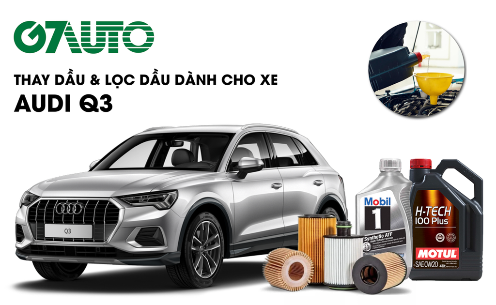 Lọc dầu động cơ hay còn gọi là lọc nhớt - một phụ tùng rất quan trọng thuộc hệ thống bôi trơn của xe ô tô, có vai trò lọc cặn, loại bỏ tạp chất, nước,... ra khỏi dầu nhớt để giữ cho dầu luôn sạch, duy trì độ bôi trơn ổn định và giảm thiểu hao mòn các chi tiết máy, tăng tuổi thọ cho động cơ. Để thay dầu và lọc dầu chuẩn cho xe Audi Q3, mời bạn tham khảo bài tư vấn của các chuyên gia G7Auto dưới đây: