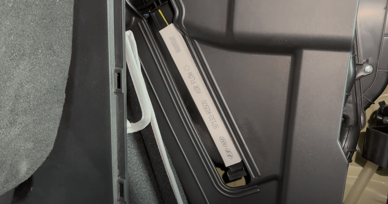 Hộp chứa lọc điều hòa Kia Carnival đặt ngay sau hộc để đồ của ghế phụ