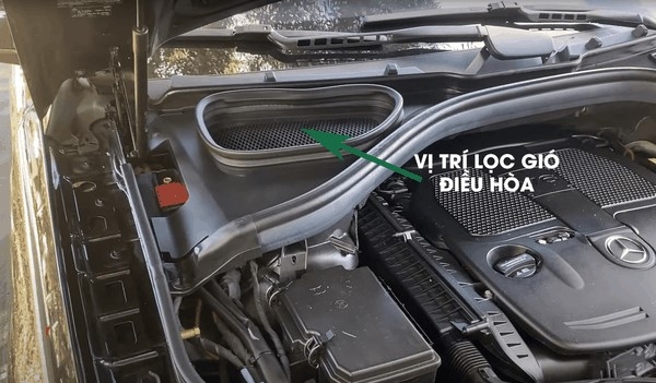 Hộp chứa lọc điều Mercedes-benz GLE đặt dưới nắp capo