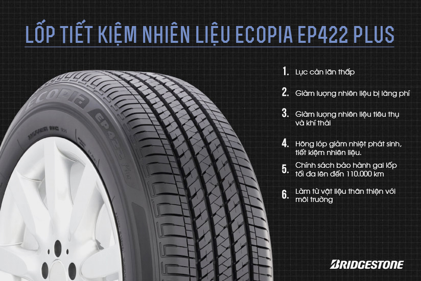 Bridgestone Ecopia EP422 Plus là dòng lốp tiết kiệm nhiên liệu vượt trội