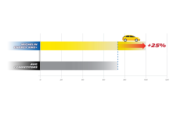Quãng đường Michelin Energy XM2+ đi được dài hơn trung bình của đối thủ