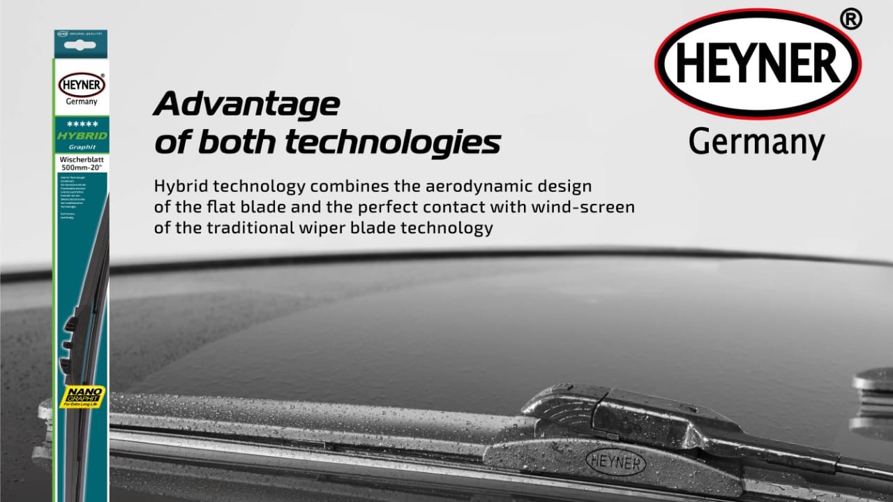 Thanh gạt mưa HEYNER® HYBRID NANO sử dụng công nghệ Hybrid với thiết kế khí động học của thanh gạt mang lại khả năng ôm bám vững chắc vào kính chắn gió.