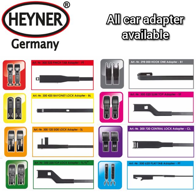 Nhờ có bộ chuyển đổi đa năng (adapter), thanh gạt nước Hybrid Nano của Heyner phù hợp với hầu hết các loại xe và đảm bảo hiệu quả gạt nước tuyệt vời ngay cả ở tốc độ cao.