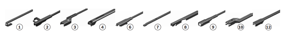 | Mắc cài Bosch | Móc câu | Mắc 1 | Mắc 2 (19mm) hoặc 4 (16mm) | - | Mắc 2 hoặc 4 | Mắc 3 | Ko có mắc lẻ, dùng gạt theo xe | |||